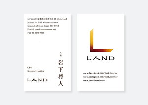 LANDさんはそこに存在する空間を、より上質な空間へと導きます。目に見えるカタチとして表現すると、四角形の空間を切り取り、立体的に少し上に押し上げる感覚。その際、影となる部分がLANDの頭文字である「L」に見えることに気付きました。シンプルで強いマークができました。