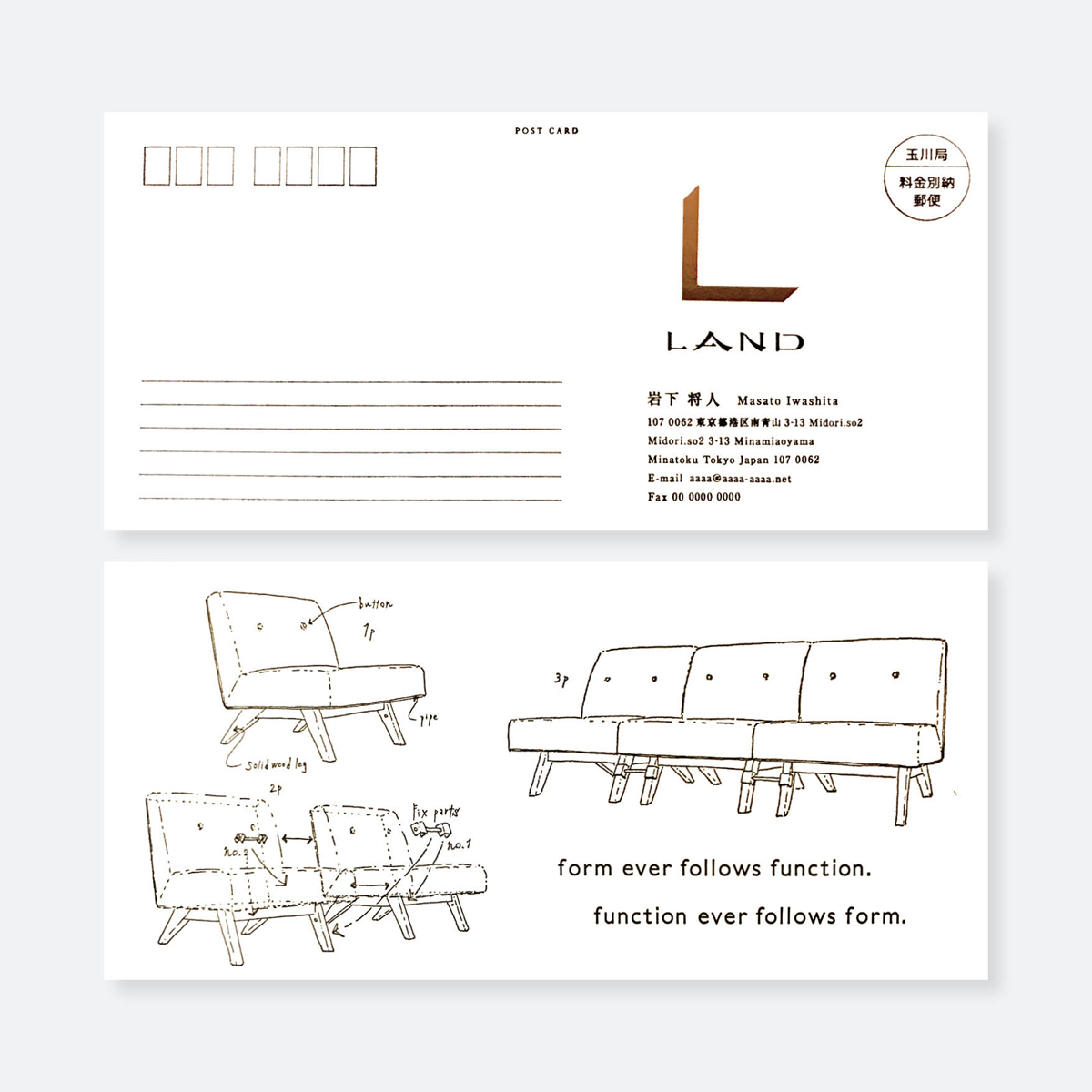 「LANDのロゴをデザインしてほしい」依頼してくれたのは、同じみどり荘に席を構えるLAND代表の岩下さん。普段ランチや、呑みに行ったりしている仲でしたが、自分の仕事っぷりを見て、大事な自社のロゴデザインをお願いされた時は、大きな驚きと嬉しさを覚えたことは今でも鮮明に覚えています。
