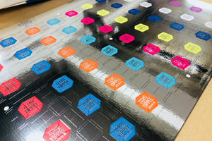 9色展開。シルバー素材にUVインクジェットでプリント。(クリックで拡大)