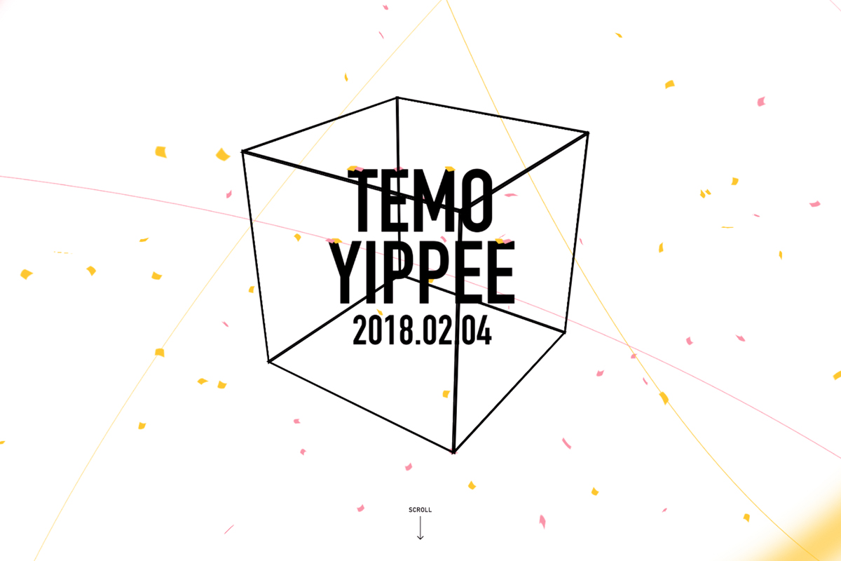 場所などの細かい案内と出欠に関してはWebサイトを制作しました。ロゴマークが回転するというアニメーションと背景の紙吹雪のアニメーションにより、楽しさと華やかさを演出しています。