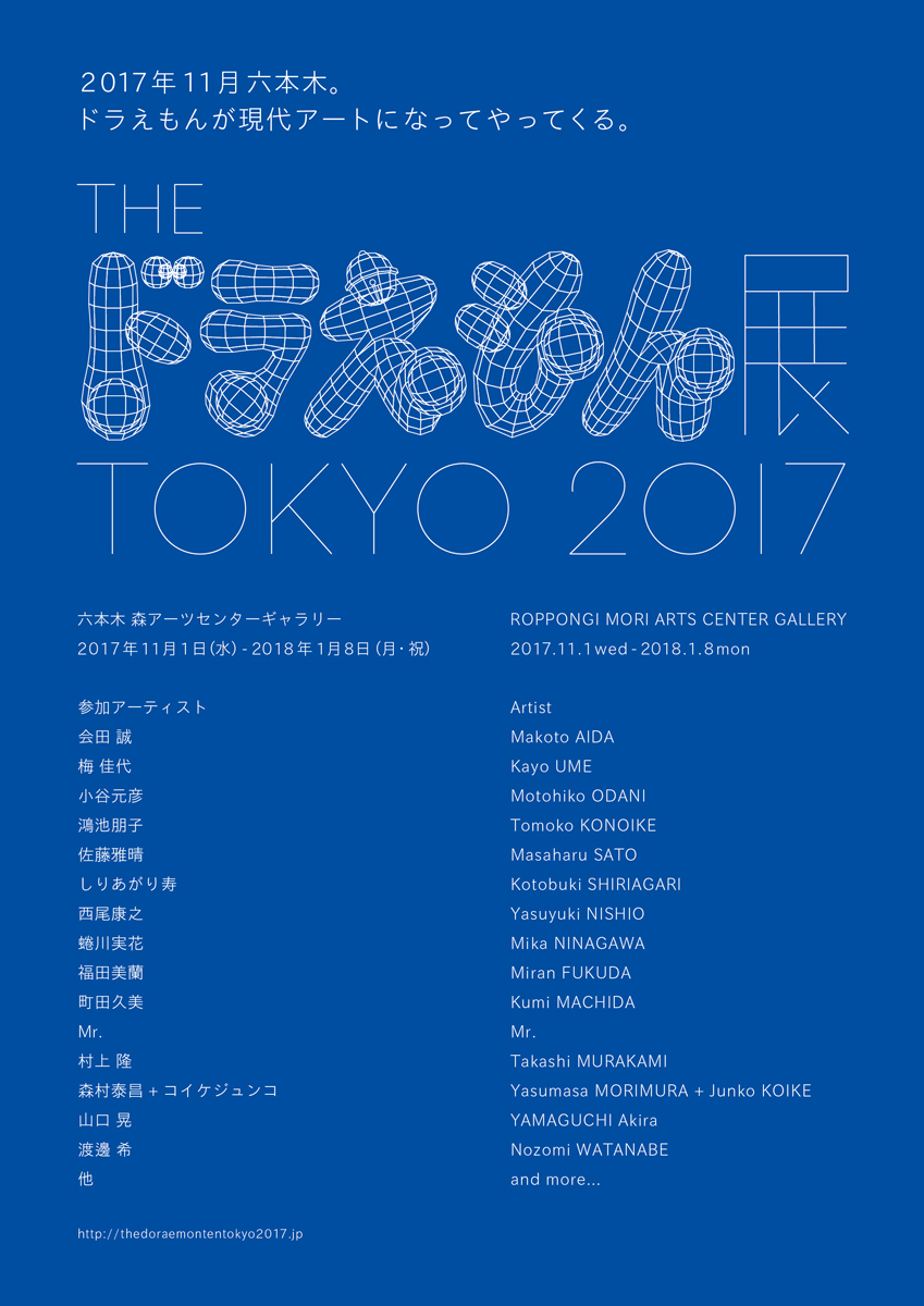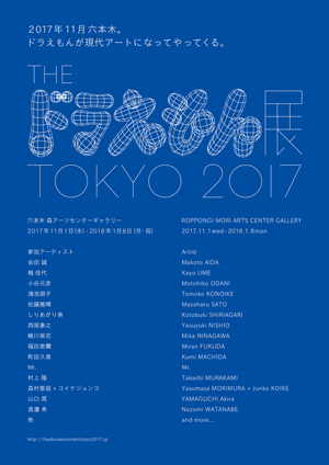 第1回目は村上隆さんはじめ多くのアーティストに参加していただき大成功を収めることができました。それから15年、再びこのドラえもん展が開催されることになり、「THEドラえもん展 TOKYO 2017」というタイトルで、アーティストも若手からベテランまで幅広い方々に参加していただき、2017年11月に六本木ヒルズ森アーツセンターギャラリーで開催されました。