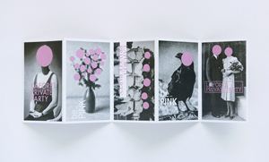 高級感と特別感を兼ねそなえたインビテーションになるよう、写真はシルバーと黒の2色分解で印刷。光の角度により輝いて見え、奥行きのある仕上がりに。5つのビジュアルにはそれぞれ異なる文字のデザインを施し、パーティーの華やかさも表現しています。