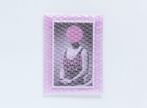 ピンクの緩衝材に包まれたインビテーションカード。(クリックで拡大) |