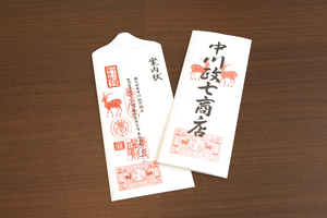 ▲加藤さんデザインによる中川政七商店の襲名式案内状。本物らしさを追求するために、印鑑や書の部分の印刷にこだわった。(クリックで拡大) |