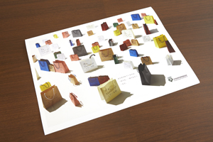▲浜田さんの作品をP5050で出力。動物愛護団体ポスター、各紙袋の発色がキレイに出た。(クリックで拡大) |