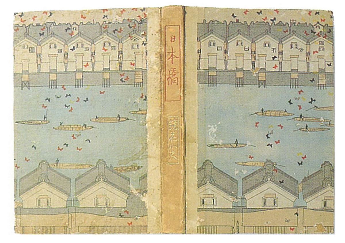 雪岱の時代、デザインは図案と言われていた。彼は資生堂の意匠部で5年ほど仕事をし、まさに図案的な数々の名作、例えば今も続く資生堂のロゴや資生堂書体ともいうべきタイポグラフィを手掛けたが、それは、鏡花との最初の装幀の仕事である『日本橋』から4年も後(のち)のことである。歌舞伎の舞台絵を手がけることになる雪岱独特の空間表現は、すでに『日本橋』に見ることができる。