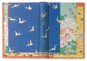 『斧琴菊』は、鮮やかな青と艶やかな赤の、花鳥舞う歌舞伎の姫、夢の“宝物”そのものの本であった。私のデザインは、当時、インダストリアルだけれどややロマンティックな雰囲気を醸しだす仕事が多く、どちらかと言えばタイポグラフィを基本に据えたデザインだった。『斧琴菊』はそんな自分には、宗教的なものがもつ尊厳に近いなにものかとして降臨したのであった。うっとりなどではなく、ガツンと打たれてしまったのだ。