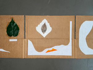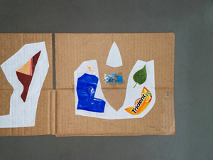 こちらはシカゴにあるコンビニエンスストアで毎日生み出されているという、オーナーThomas Kongの表現。段ボールやお菓子のパッケージや包装紙などお店で余ったものを使い、コラージュしています。