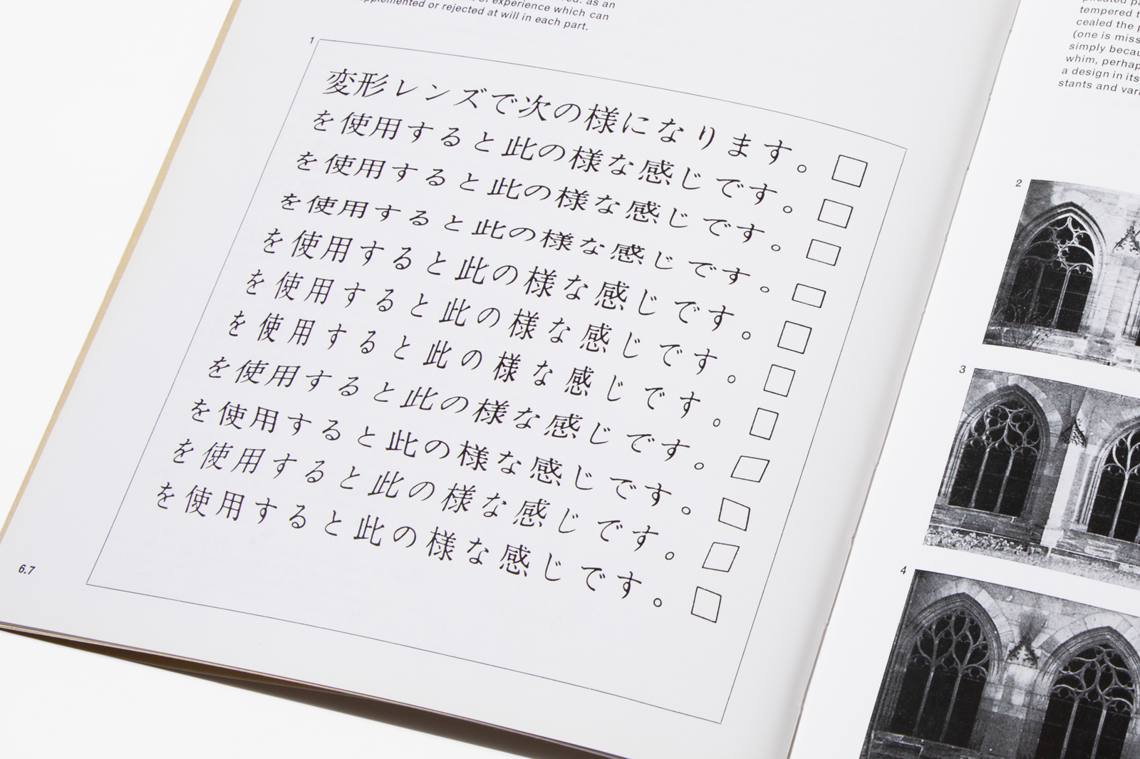 着目したのは冒頭の「極東からのプログラム」。日本の朝倉直巳さんが送った日本語書体からゲルストナー氏が魅了された図だという。この部分に対する詳しい解説は多くありませんが、本書の中で唯一日本語との関わりを持つページでした。そこから日本語書体の組みや漢字・ひらがな・カタカナの形態プログラムを設計し、日本とスイスをイメージした配色と組み合わせることで新訳版のカバーデザインの完成としました。