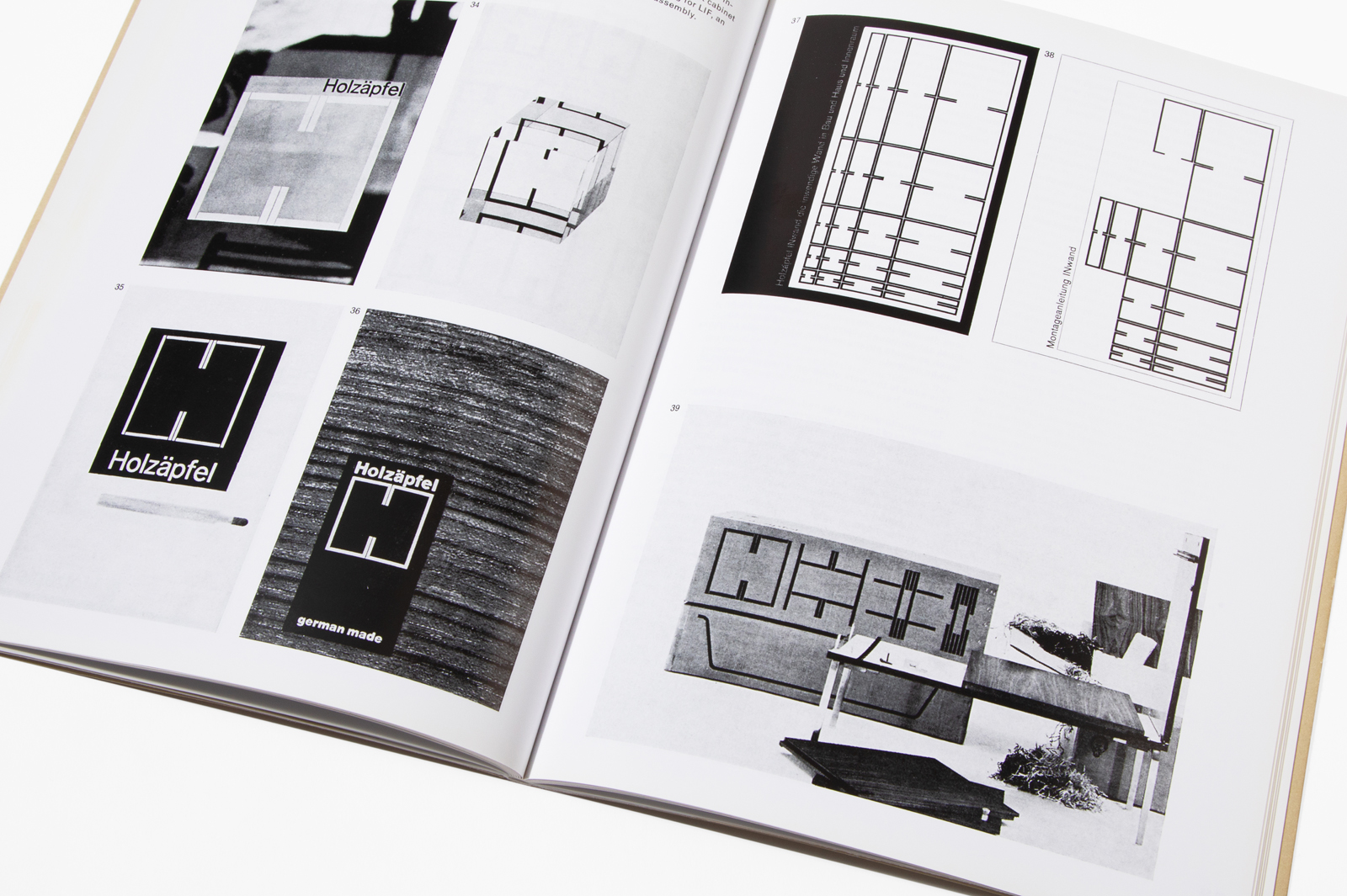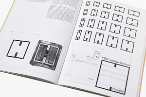 「Holzäpfel」の場合、基本のシンボルマークの構成要素はすべてを四角い箱で頭文字のHの造形を作っています。そして決められた四角い箱を単位ごとに変化させることでプロポーションを作れるシステムで、シンボルマークが可変をしても商標を失わない記号構造のデザインとなっています。