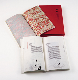 Takagi, Mariko『Washi - die Kunst und Tradition des Japanpapiers.』 (2001年)。卒業作品として制作した5部のうちの1部。2003年に200部出版した。数年前から廃版。(クリックで拡大) |