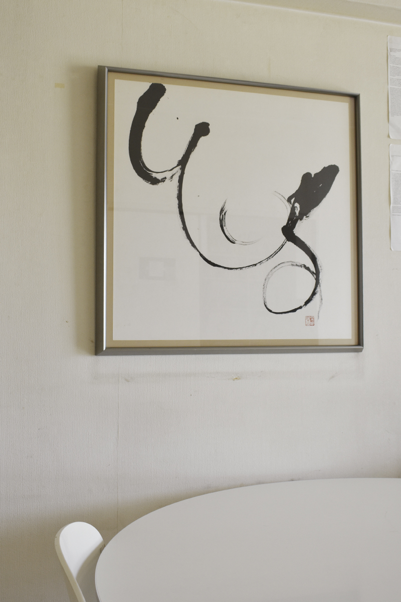 父が上羅氏よりプレゼントされたものだ。一見するとまったく読めないように思うが、「波」と聞くと見えてくる。海の勢いを感じる形だ。