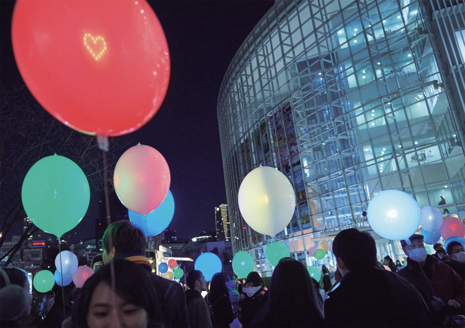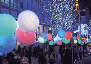 「光れ!紙展」からの発展。紙に導電性インクをプリントし、風船の内部に仕込ませることで、さまざまな模様や絵柄を浮かび上がらせる「FLOTICON BALLOON」の開発。この風船を持ち帰られるイルミネーションとして企画し、六本木ヒルズのクリスマスにて10,000個配布しました。この年のクリスマスの企画として各商業施設の中でも大きな反響を呼び、持ち帰られたイルミネーションが東京中を彩りました。風船も1つのメディアとして捉えれば、たくさんのコミュニケーションが生まれていきます。