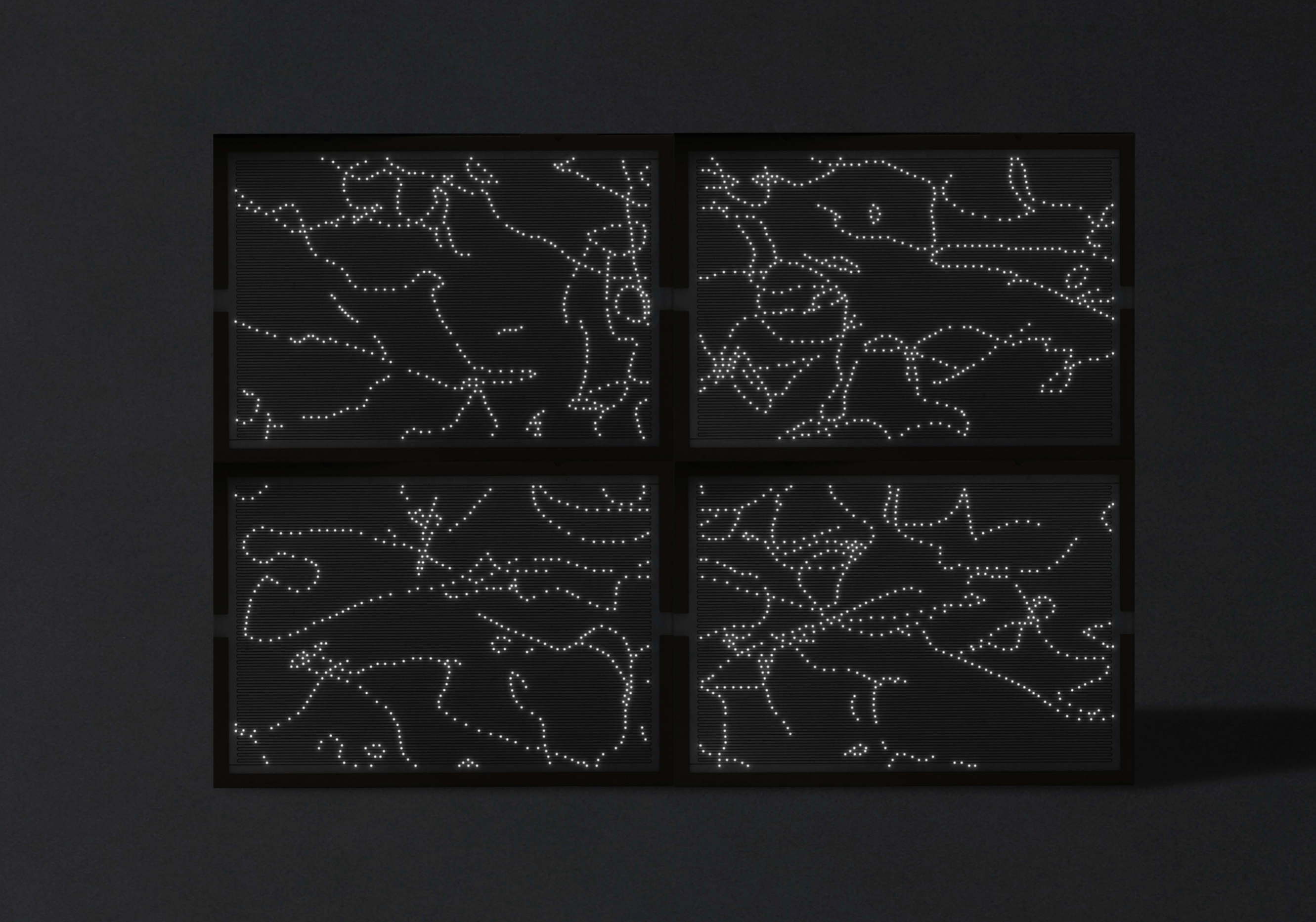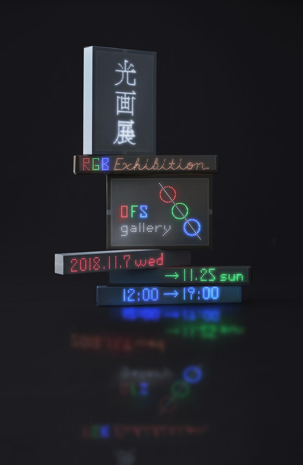 OFS Gallery にて「光画展」を実施した。ダンボールに導電性インクをシルクスクリーンでプリント。これをキャンバスとしてみたて、そこにLEDを配置することで自由に表現してもらう企画展。デザイナーの仲條正義氏、写真家の小山泰介氏、ROTH BART BARONの三船雅也氏など、さまざまなクリエイターに参加していただき、光の線を描いてもらいました。