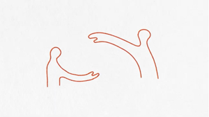 しかし、それも容易なことではなく、どちらかに偏ってしまってもよくないですし、説明的にはしたくないので、自分たちの手を撮影し、それを大きな曲線でトレースをしていき、どこまで抽象化できるか? を何度も試しました。そのようなスタディ作業の先に、なんとも言えない形が浮かび上がってきました。それは、僕の脳味噌の中から生まれた形でもなく、まるで土偶のような、底知れぬ面白さがあるように見えたのです。笑っているようで、無表情でありユーモアを感じる。それこそが、「その先」というまだ見ぬ未来に向けたメッセージにもつながるように思えました。