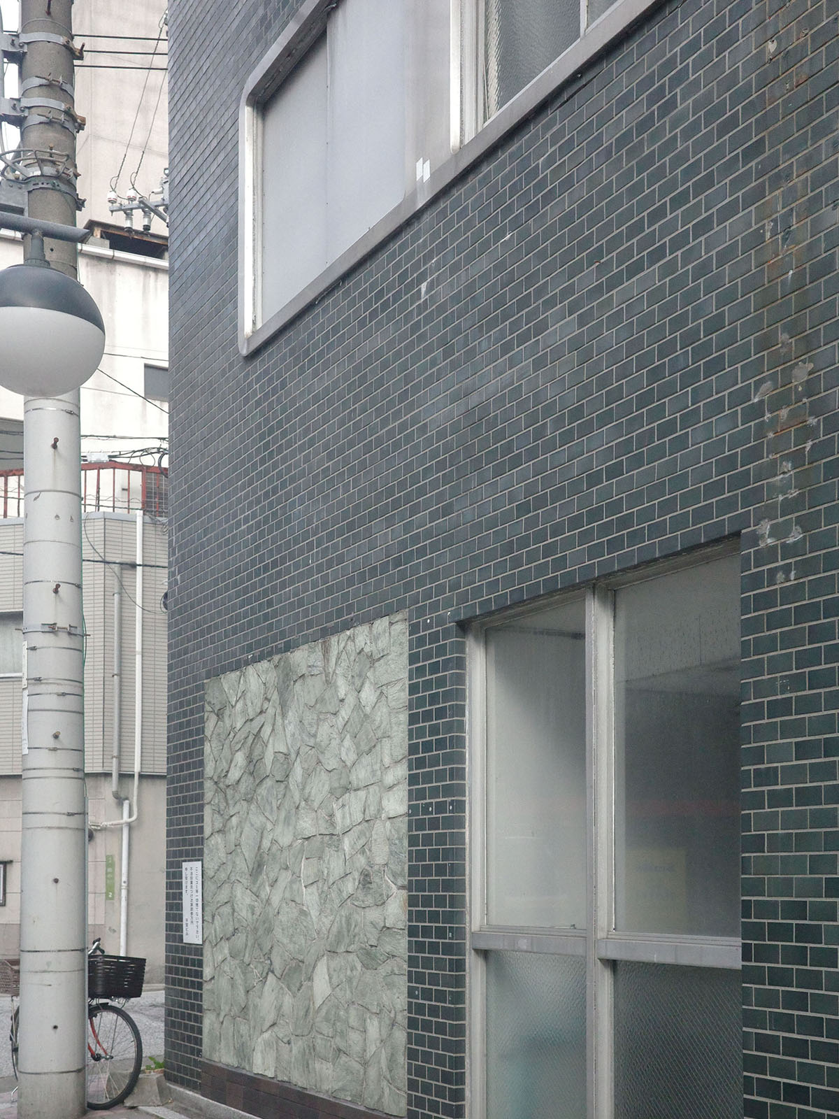 電車をおりて1駅分歩いたり、旅行先の知らない街を歩くのが好きだ。その散歩の中でとりわけ楽しみにしているのは、昭和の時代、おそらく高度経済成長期以降に建てられたとみられる建築に出合うこと。なんとも言えない独特な配色、角Rのサッシ、過剰な装飾のある建物も分かりやすく魅力的だが、社会主義的な気配のする集合住宅のどこか禁欲的なフォルム、悪くいえば地味な佇まいにも、ディテールを追うと、出窓が三角形になっていたり、張り巡らされたタイルは細かく塗り分けられていたりと、設計者の意図を感じる。あってもなくても建物としては成立するかもしれない意匠、広く誰かに向けられたものではない、個の美的感覚や造形をあそぶ豊かさみたいなものに潤いを感じて嬉しくなる。