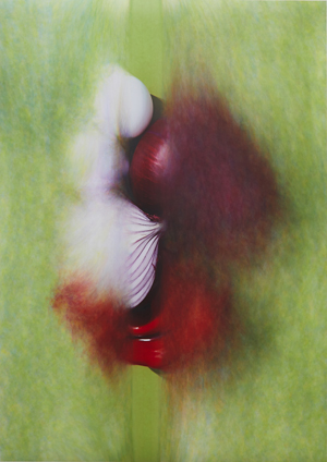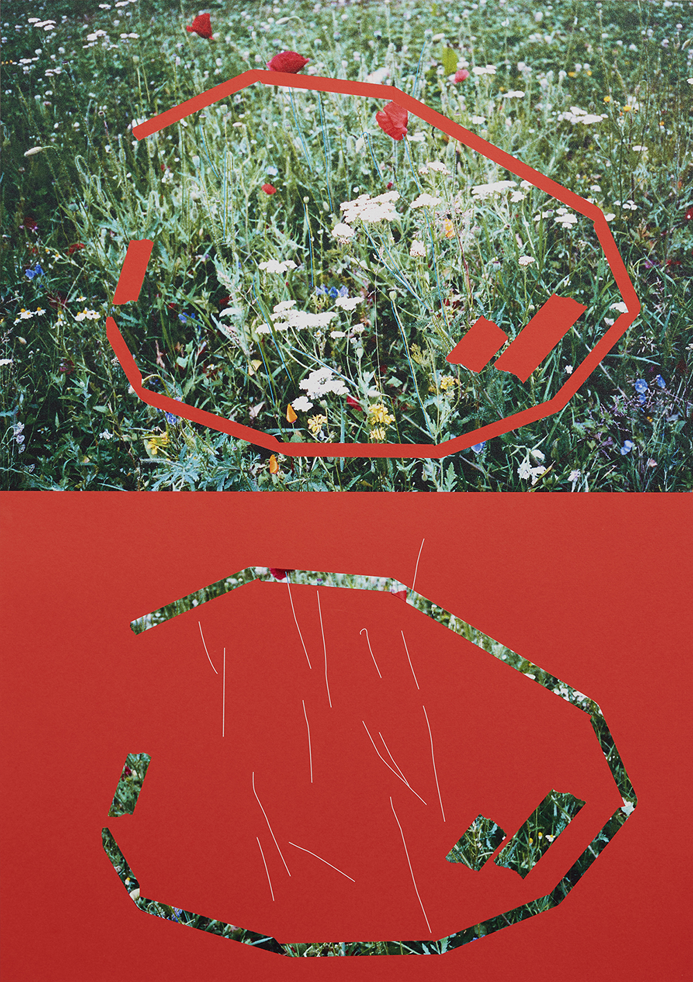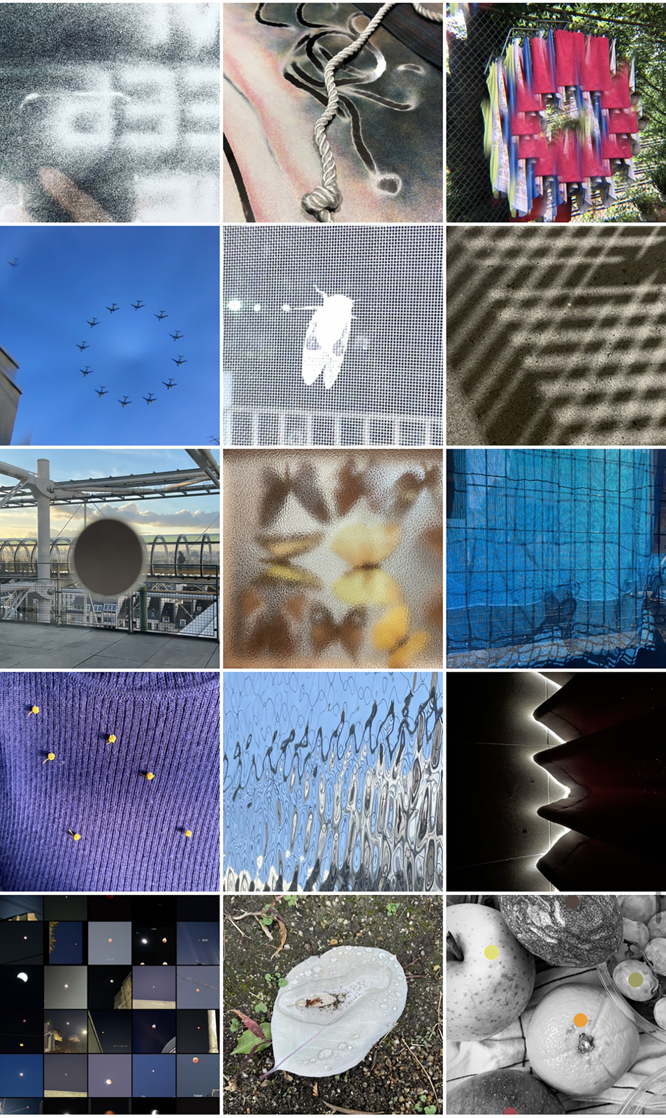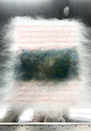 ●エラーと仲良くしてみる 数年前に同世代のアートディレクターとグループ展をすることになった。社会人になってから10年ほど自主制作などしないまま仕事に没頭していた私は、制作のエンジンのかけ方が分からず路頭に迷い、とりあえず毎週金曜日に印刷会社のショウエイさんに通い、ゴールを設定しない実験をしてみることにした。 あるインクジェットプリンタの印刷準備工程が目に止まった。まず、平台のプリンタに紙を設置し、次に紙に触れるか触れないかの距離までインクの吹き出し口の高さを調節する。なぜ高さ調節が必要なのかというと、このプリンタは厚紙やアクリル、木の板などさまざまな厚みの媒体に対応しているため、インクの吹き出し口の高さ調節機能が付いている。その機能を見て、ふと「インクと紙の間に異物が入ったら何が起こるだろう」という興味にかられた。 プリントされたインクの中にフィジカルな糸や紐が定着されグラフィックの一部になっていたら面白いんじゃないか(かなり漠然とした興味だけれど)と思い、早速実験をすることにした。残念ながらインクによる糸の定着はほとんどせず、さらに入稿した写真や文字がぼやけて出力されてしまった。実験は失敗。だが、その印刷のぼやけが想定外のアウトプットとして現れて、私はその美しさに感激してしまった。 そうか、よく考えれば当たり前の結果。厚さ5mmほどの紐が挟まれていて、インクの吹き出し口と紙の間に距離が生まれるため、噴射されたインクの粒たちが定着できないまま5mm程の隙間でさまよい想定外の場所に定着してしまう。それによって、入稿した写真が羽毛のような、オイルペインティングのような、不思議な像に変化してアウトプットされていたのだ。 結果的にエラーから偶然生まれたこの手法でようやく私の制作のエンジンがかかり、無事に作品「粒をレイアウトしてみる」を作り始めることとなった。入稿までは私の役割で、どんな像が出力されるかはプリンタに委ねる、言ってみれば私とプリンタとのコラボレーションとも言える制作活動だったかもしれない。