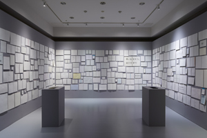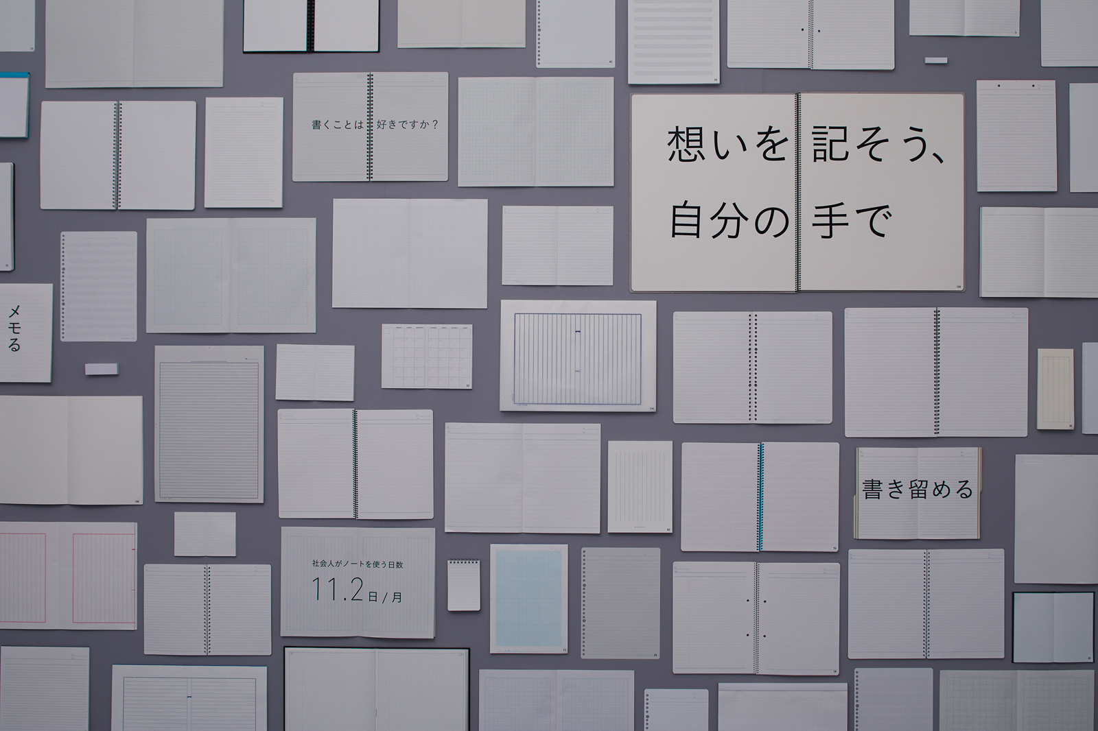 毎年コクヨで開催している新商品発表会のタイミングで、新商品発表ではない別の軸でコクヨを紹介する企画ができないかというお題に対して行った展示で、当時の現行品として販売しているノート300種類(そのとき調べたら、なんと300種類もあった)を一堂に集め、ページを開き表紙が見えない状態で展示した。