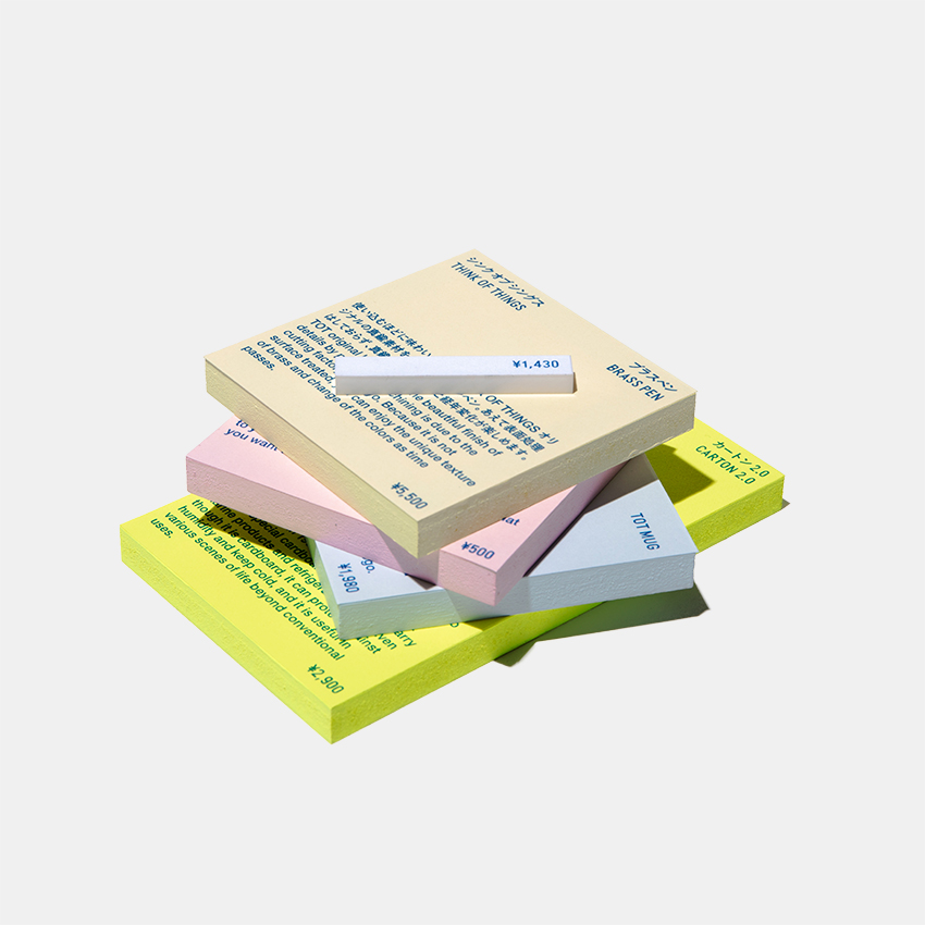 付箋のフォーマットを用いて制作した原宿にあるショップ&カフェTHINK OF THINGSのPOP。(クリックで拡大)。 |