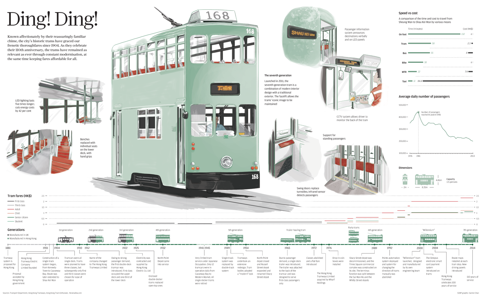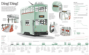 大学生の頃から数年間、同級生の紹介を受けて新聞社のデザイン部門で働いた。デザイナーの仕事はニュースに基づいたデータとテキストを図表、地図、挿絵やインフォグラフィックなどに視覚化することだったので、情報をまとめる力と伝達の効率性が重要視された。学校での勉強も含め、「デザインとは知識とロジックで設計すること」だと認識していた。(クリックで拡大) |