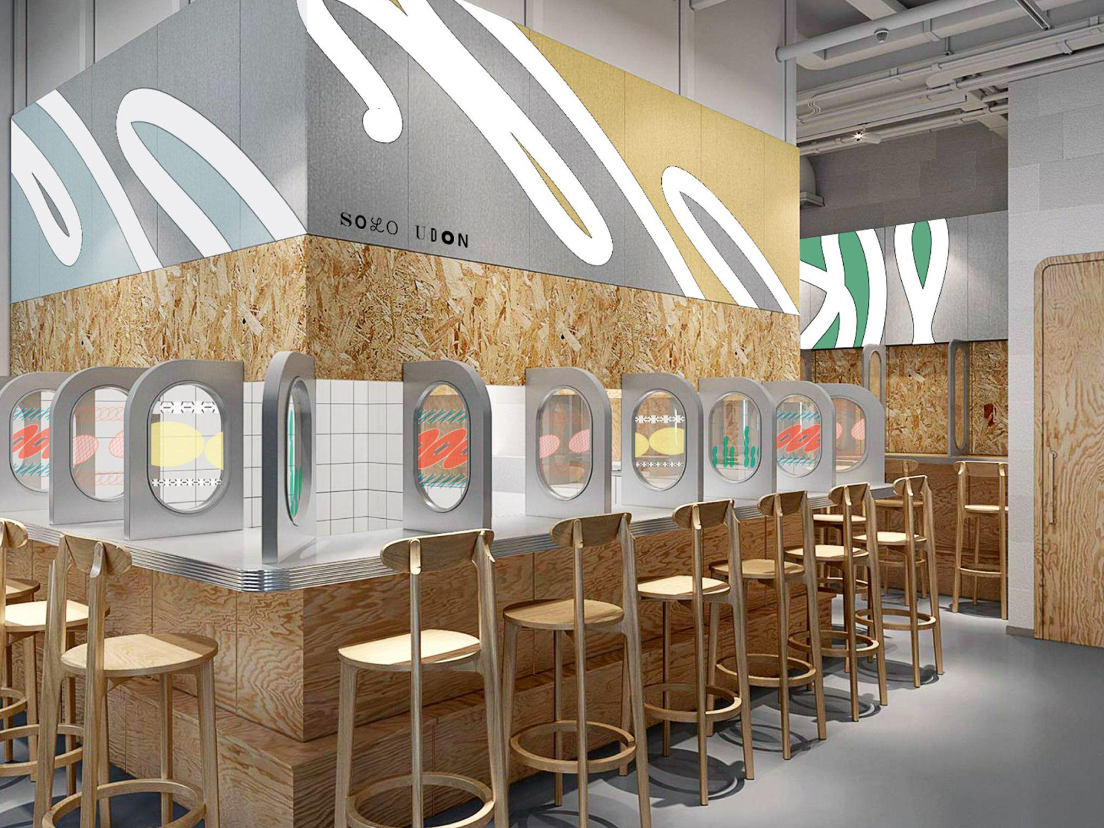 飲食店のブランディングと空間デザイン(「SOLO UDON HONG KONG」/2022年)。(クリックで拡大)。 |