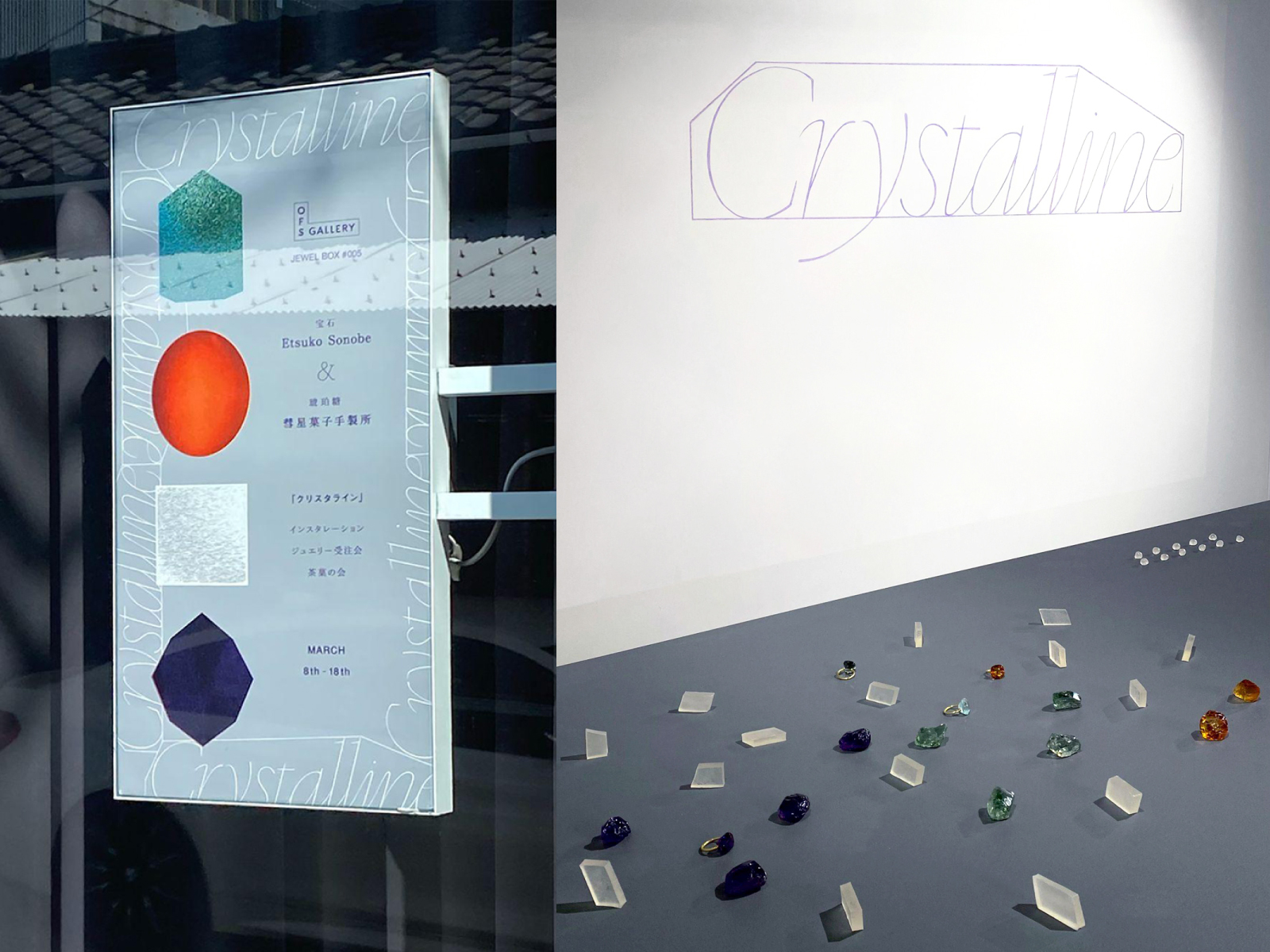 展覧会の宣伝美術と空間デザイン(「クリスタライン 宝石と琥珀糖」/2023年)。(クリックで拡大) |