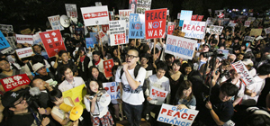 国会前に集まり安保関連法案に反対の声をあげる人たち(SEALDs)。毎日新聞より引用。(クリックでリンク)