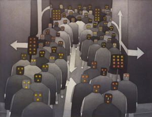 群衆(ジャン=ミシェル・フォロン)。mutualartより引用。(クリックでリンク)。 |