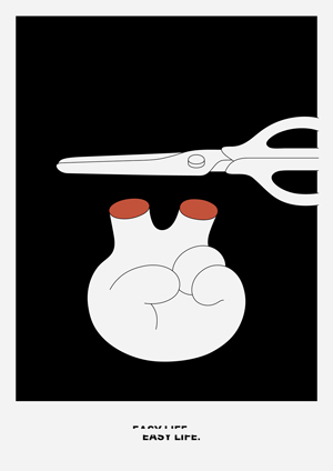 2020年2月27日。小中高の臨時休校要請が発令された日にラフが浮かび制作。新型コロナウイルスにより、今までの便利で簡単な生活は突然切り取られ、自粛生活を余儀なくされた。当たり前にコンビニエンスな日々は、正しかったのだろうか。どこかへのしわ寄せを感じる生活について考えながら作り上げた。(クリックで拡大) |