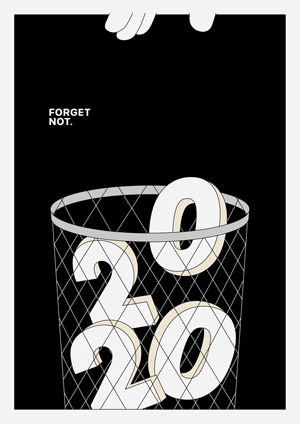 2020年を12月に振り返ったとき、ゴミ箱に捨ててしまいたいような1年だと思い制作。絵を進めていくうちに、ゴミ箱の中に入れたまま保存しておくべき1年だったのかもしれないと思い、タイトルを「忘れない。」とした。(クリックで拡大) |