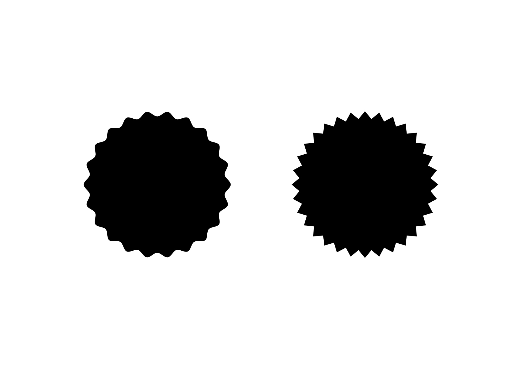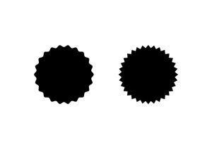 たとえば以下の2つはどちらも「円」の要素が大きく全体を構成していますが、先端の部分がそれぞれ違います。