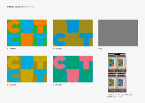 一般的な色覚では見えづらい色の差異が特性によってはハッキリと見えることがあり、またその逆もあります。そのことを利用して、見えてくる「CWT」の文字が色覚の特性によって反転する、という仕掛けになっています。