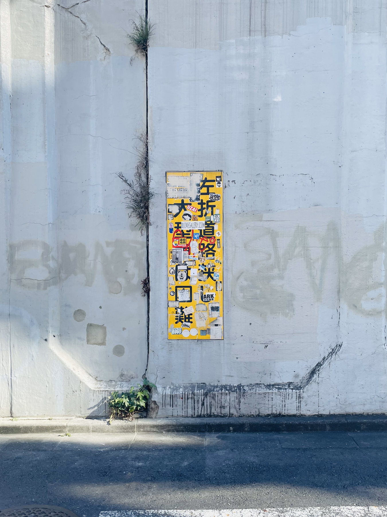 もしみんながそう思って「左折」を避けて貼っていったと考え始めるとめちゃくちゃ面白いし、読めなくなる場所にバン! と貼った人は挑戦的な思考だなとか。おそらくみんな知り合いじゃないのに、でもなんだか画面全体のバランスを無意識にとっている気もしてしまって、どうにも見入ってしまう。