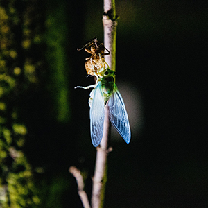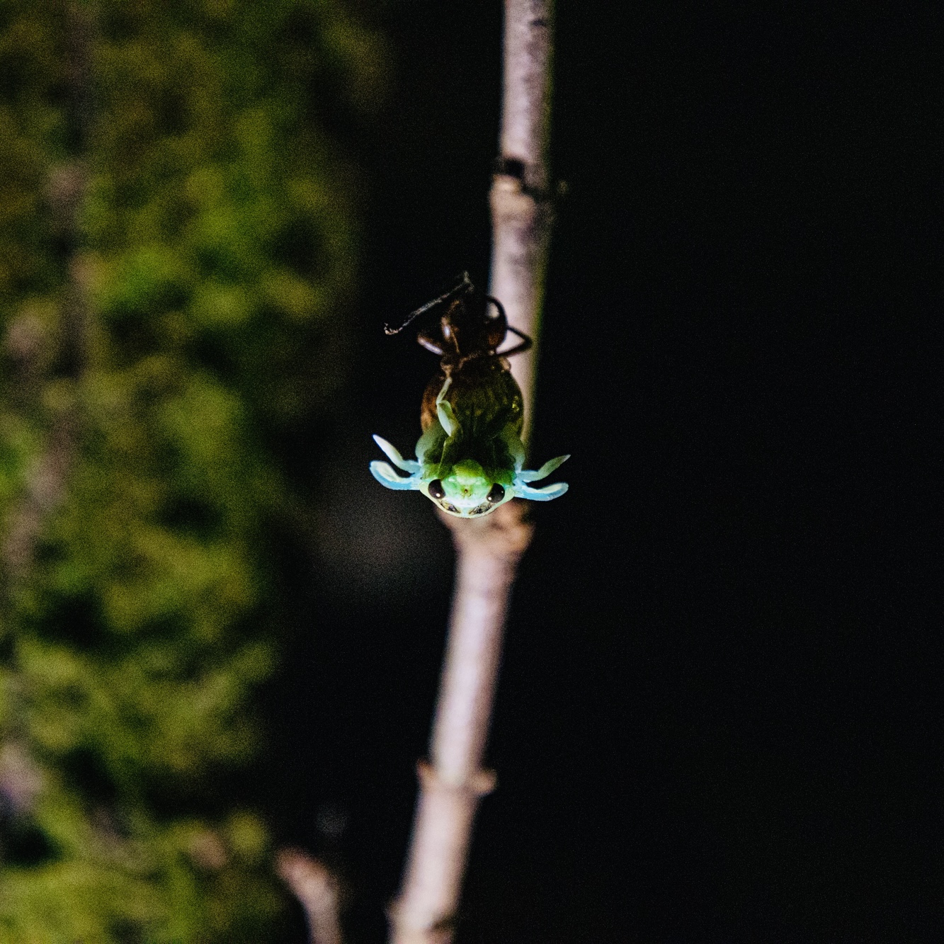 この子の人生(セミだけど)はあと2週間。羽化の瞬間にそれを考えてしまうのはすごくつらいのだが、そんなことを考えたところで何も変わることはなく、ただひたすら蒸し暑い夏の夜に、全身蚊に刺されながらもまた、ぼーっと見入っている自分がいた。