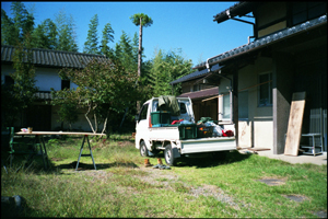 ▲裏庭には外された障子や襖があった。(クリックで拡大) |