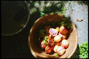 ▲ザクロをたくさん収穫。でも誰も持って帰らない。写真は全員撮った。(クリックで拡大) |