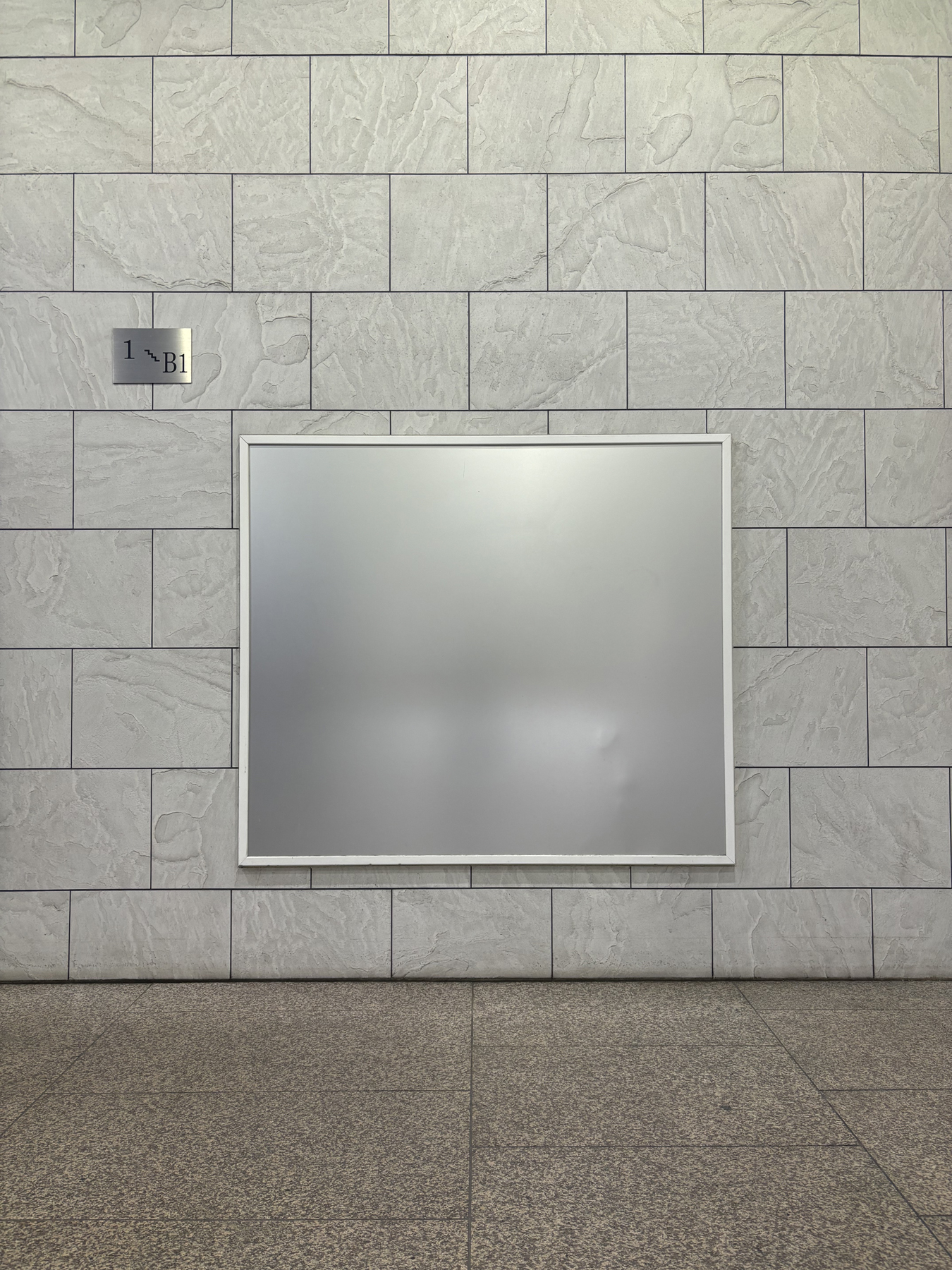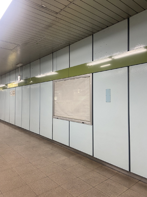 ▲2025/01/31。新宿駅、マップレンタルに近い出口(多分)。「本来広告とかポスターとか貼りそうな場所にいまは何もないやつ」第3弾。え! これアート? と思いながら撮った。こんなにきれいに銀色が貼られているけれど、この上に貼られるポスターは緊張してしまうのではないか? と思った。これはかなり気になった。(iPhone15で撮影)。(クリックで拡大) |
