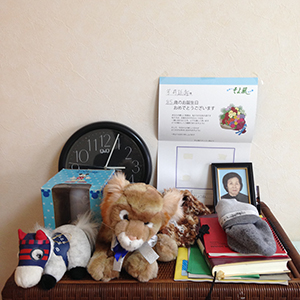 ▲施設の自室。競馬会に勤めていた父は昔から馬が好き。iPhoneで撮影 |