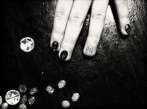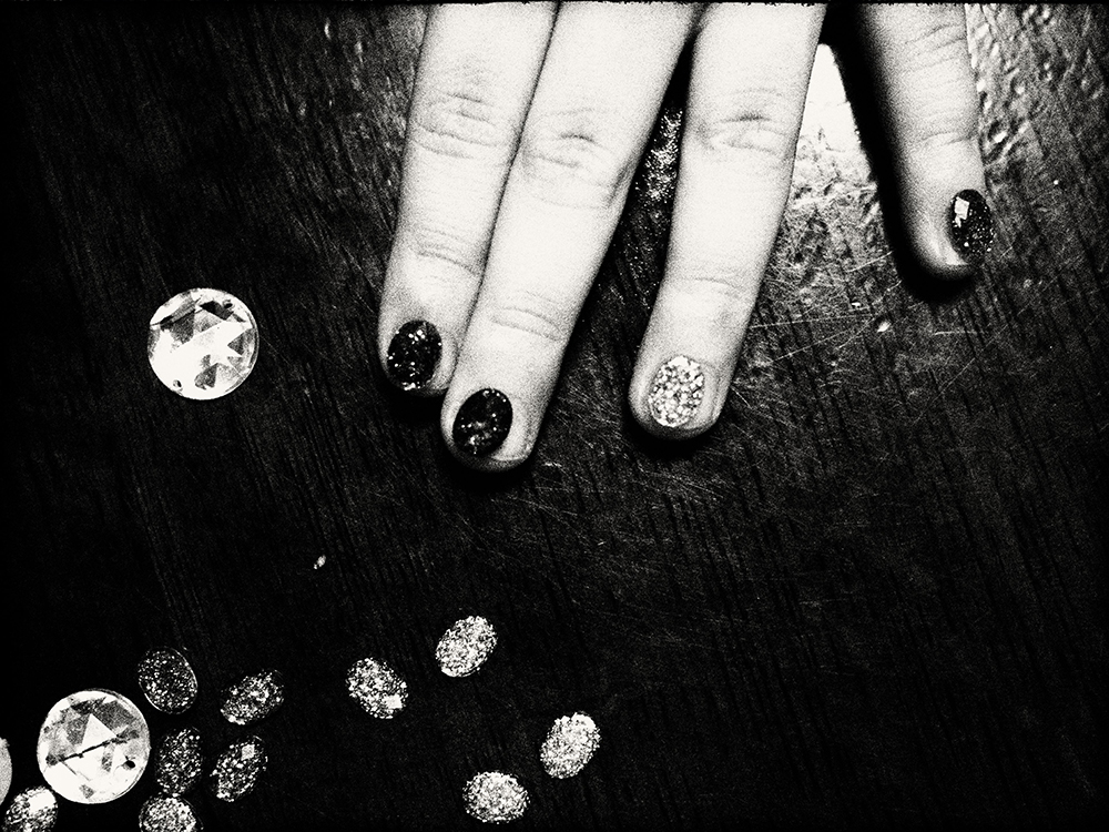 ▲「nail」 カチューシャに付いていたキラキラを剥がし、リサイクルする娘。OLYMPUS PEN E-P3で撮影 |