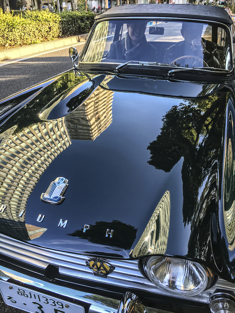 「美しい…!」初めて目にしたTRIUMPHの車体は、冬の日差しを浴びて、まわりを圧倒する輝きを放っていた。イギリスに長年住んでいた友人が、大切にしていた車を手放すのでと、ふいに見せに来てくれたのだ。TRIUMPH=大勝利。この単語を習った学生の頃、なんでBIG WINじゃないのだろう、と不思議に思ったのを覚えている。何か、特別に誇らしいことばのような気がして、お気に入りの単語であった。車に疎かったので、TRIUMPHという車があることをこれまで知らなかったのだが、正にこの美しさにふさわしい響きだ。