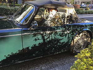 TR4A(1967)。ピカピカに磨かれた深いグリーンの車体にしばし見とれていると、「どう、乗ってみない?」と友人。興味津々で助手席に乗り込んだ。ブルブルとゴーカートのような振動に驚き、慌ててシートベルトを探していると、「この車はベルト必要ないから。国で免除されてるんだ」という驚きの言葉。要するに、シートベルトの意味がない、ということか。ぶつかったら一巻の終わり、という1967年生まれのこの車だが、気高く完璧なフォルムからは、そんな危うさは微塵も感じられない。車を恋人のように愛おしく感じる、という人の気持ちが、少し分かった気がした。