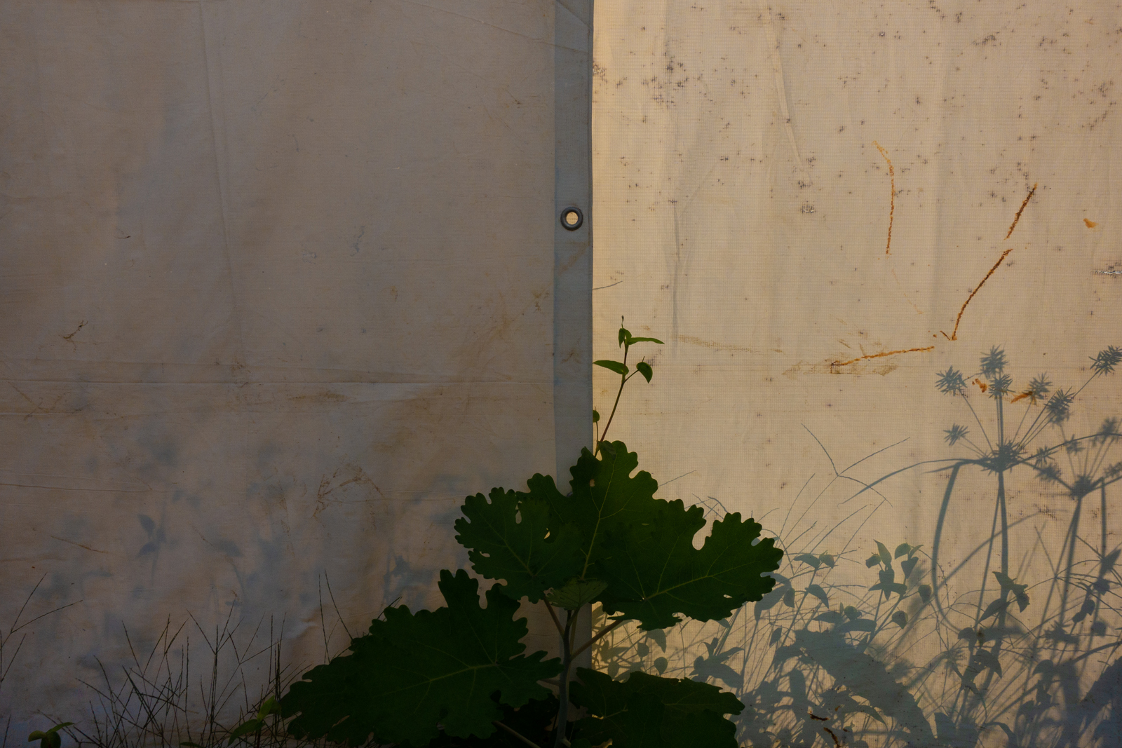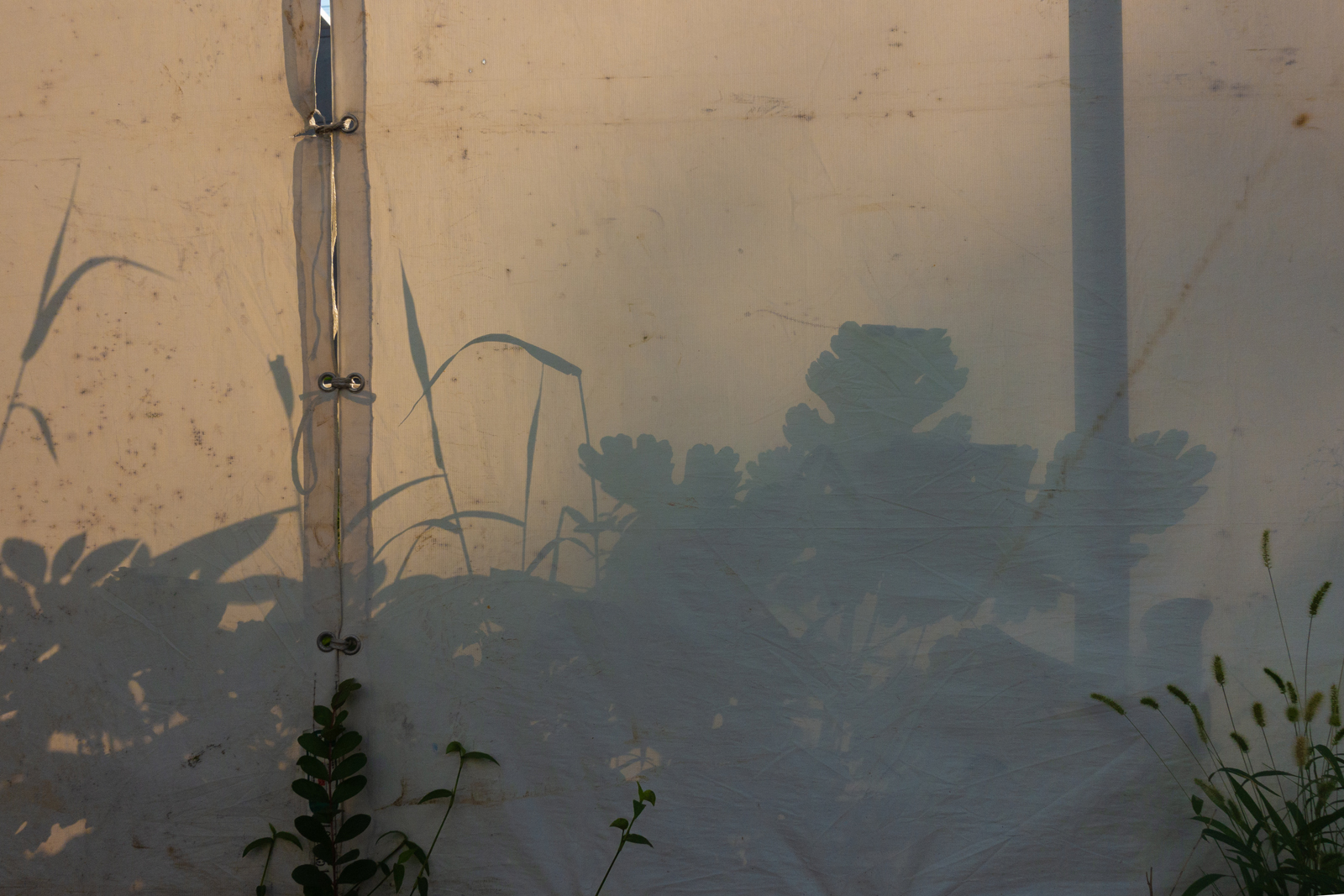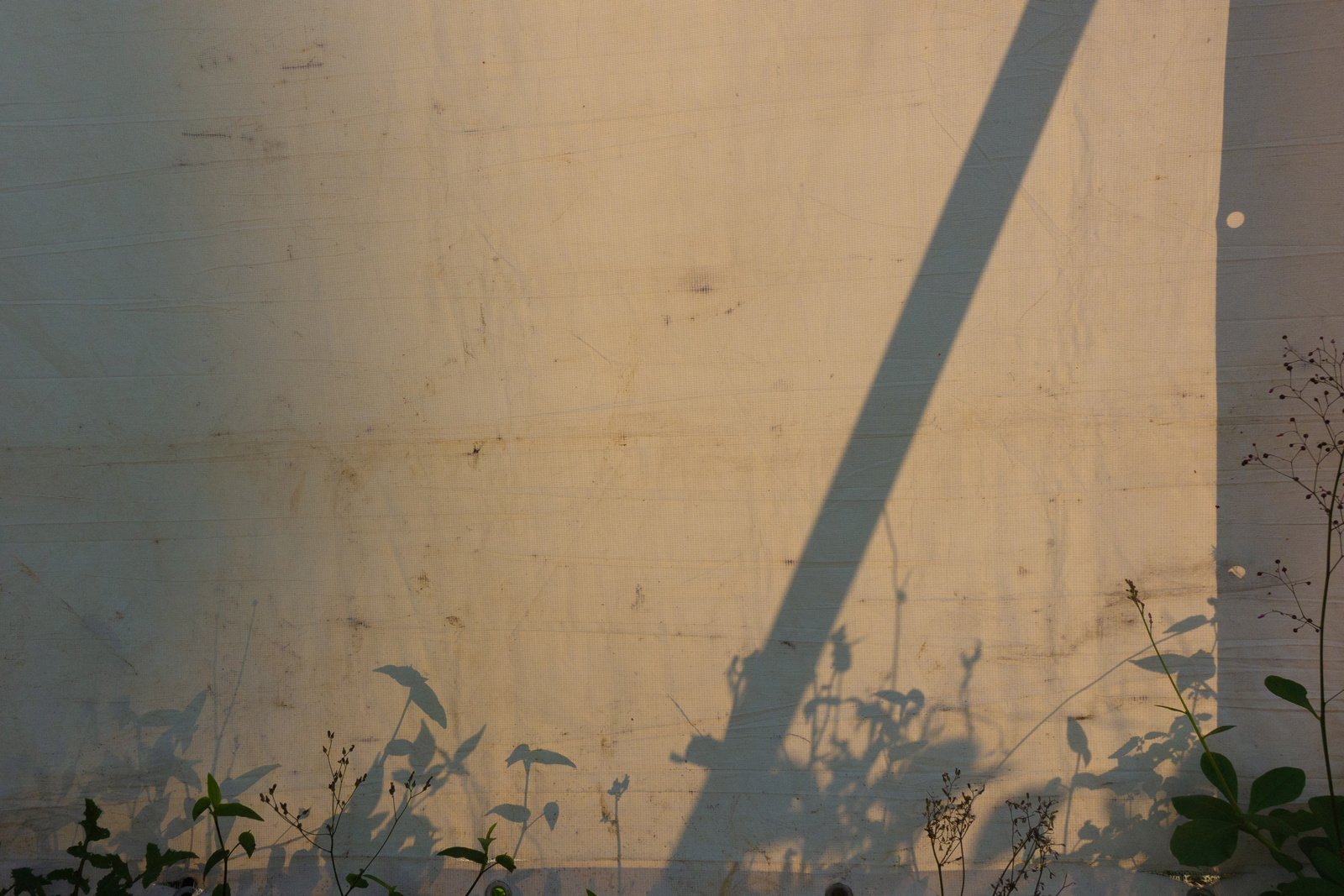 道端に座り込んで撮影している私の後ろを、出勤する人たちの足音や車の音がいくつも通り過ぎていた。まだ工事の人たちが来ていないシートの向こう側は静かで、影のあたりには、持ち去られずに残ってしまった建物の欠片と、待合室に漂っていた空気がうずくまり、来し方行く末を思っているように感じた。私自身も仕事を失う予感と、母を亡くす予感の中、自分自身の来し方行く末を考えていて、シートの向こう側と共振しそうになった。