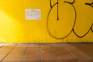 かつて彼がもたれかかっていた壁に貼られた無機質な文字、乱暴な落書き。
