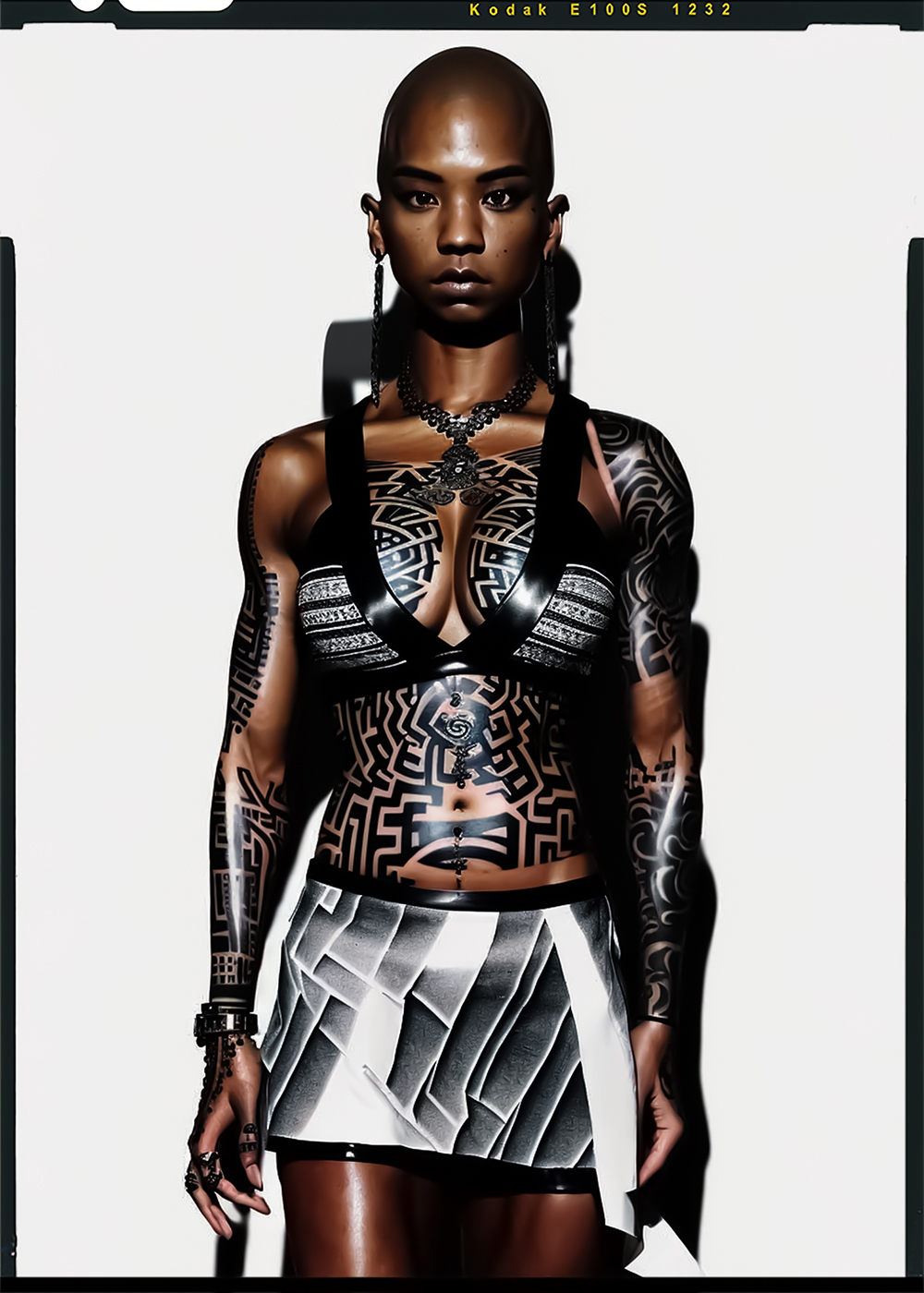 一方で、刺青を入れた妊婦の黒人女性を100人集めることは現実的に不可能だが、AIならそれが可能になる。ロケーションも、世界中どこでも設定でき、宇宙空間での撮影すら成立する。物理的な制約を受けずに視覚構成を展開できる点で、AIは新たな撮影手法として有効である。