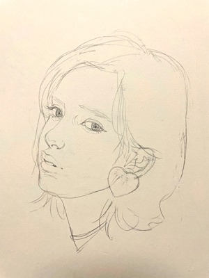 大まかな線であたりをとった後に、細部を描き込み、表情をつけていきます。0.3のシャーペンを使用し、下絵はシンプルな線で仕上げるよう心がけています。