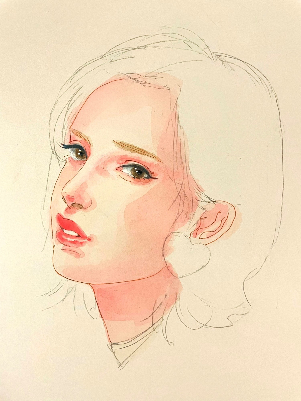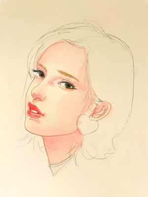 私が描くイラストはリアルに近いものが多いのですが、あえて色ムラを残したり、線画に残る僅かな緊張感など、写真作品にはないアナログイラストならではの良さが表現できたらいいなと思っています。