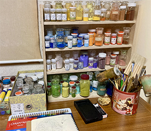▲岩絵具で仕上げていく。(クリックで拡大) |