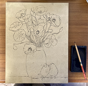 ▲墨で輪郭を描いていく。(クリックで拡大) |