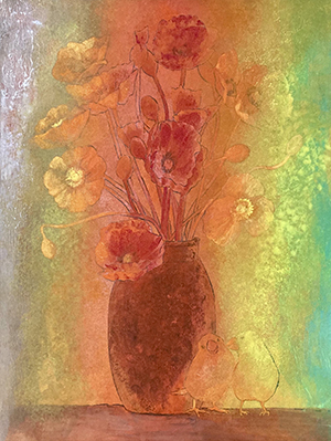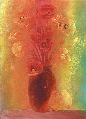 今回の作品名は「ふたりでいれば」です。ひとりではできないことも、ふたりでいれば大丈夫、そんな安心感をイメージしながら描きました。あたたかな雰囲気を少しでも感じていただければ幸いです。