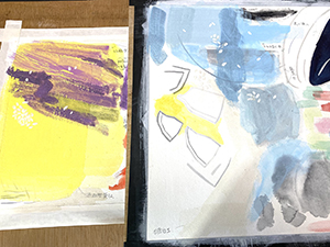 棒絵具や泥絵具で下塗り。(クリックで拡大)